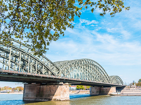 B:霍亨索伦大桥(英语:Hohenzollern Bridge,德语:Hohenzollernbrücke)是位于 德国科隆的一座跨越莱茵河的桥梁,是德国 和欧洲铁路⺴最重要的枢纽之一。霍亨索伦桥始建于1907年,由3座平行的铁路桥组 成,并设有人行路和自行⻋路。2008年桥上刮起的浪漫⻛潮,让霍亨索伦桥慢慢被爱情锁覆盖,这里也因此成为了科隆的热⻔地点。