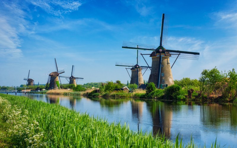 C:小孩堤坝(Kinderdijk),位于鹿特丹东南10 公里处,保存着19架建于1740年代的⻛⻋, 是每位游客来到荷兰来到鹿特丹必去的地方。⻛⻋是荷兰最具代表性的景观,每本有 关荷兰的画册中都会出现⻛⻋的身影。小孩堤坝里的⻛⻋群已被列入世界遗产名录,可 以说是荷兰⻛景的典型样板,也是荷兰历史和文化的⻅证。