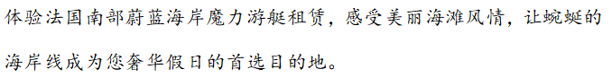 您是否想探索地中海?各种各样的可能性等待着您,我们的团队为您安排最有趣的一天。我们为您提供建议,以确保无论您选择哪个目的地,都拥有难忘的回忆。